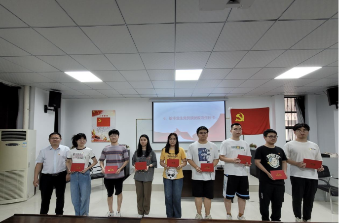会上,孟三爱为2023届毕业生党员颁发了政治生日卡,勉励毕业生党员增强身份意识和责任意识。章三为退伍毕业生党员颁发了纪念章和定制水杯。