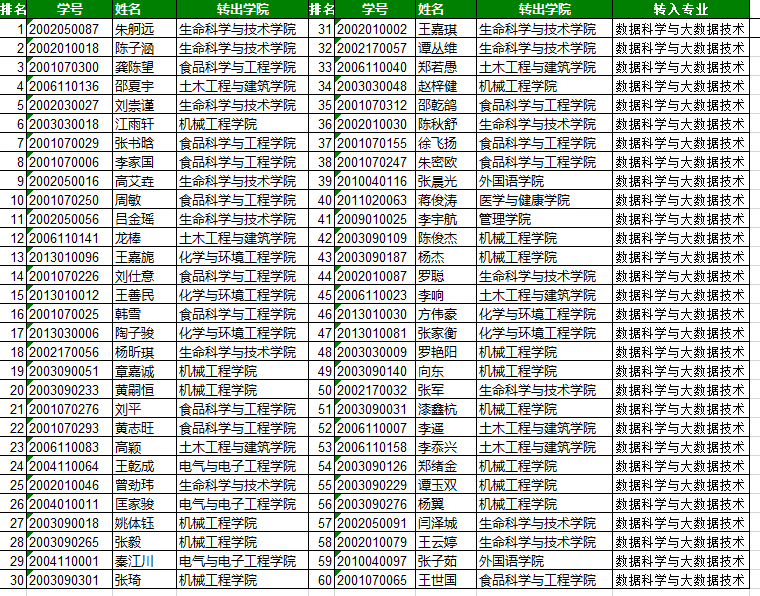 2021年澳门网投唯一官网申请转数据科学与大数据技术专业拟录取名单公示