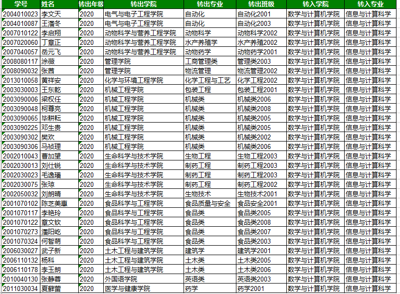 2021年澳门网投唯一官网申请转信息与计算科学专业拟录取名单公示
