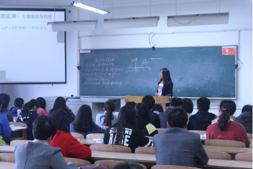 刘江蓉老师就《闭区间连续函数的性质》这一节内容,通过零点定理、零点定理的应用和零点定理的推广三个阶段讲解该课程。课上刘江蓉老师采用ppt和板书相结合的方式,将数学和生活联系在一起,使内容更加通俗易懂、简洁明了,同时也增加了同学们的学习兴趣。课后进行观摩的老师和学生代表也表达了自己的感受。刘江蓉老师板书十分详尽工整,授课严谨认真,为人平易近人、和蔼可亲,师生对刘老师和她的讲课都给予了很高的评价。