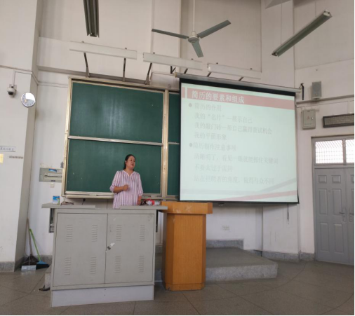9月14日下午14:30,澳门网投唯一官网邀请了武汉梦工场服务有限公司就业总监胡玉玲女士为大四学生讲解简历制作及面试技巧。澳门网投唯一官网打算找工作的同学参加此会。