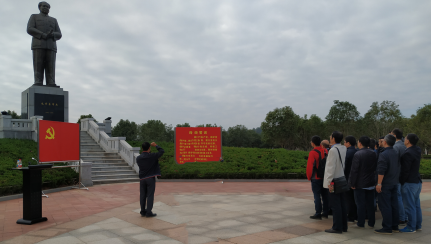 在教育基地,教工党员们在伟大领袖毛泽东主席铜像的见证下,面对鲜红的党旗,重温了入党誓词,表达了对革命先辈的缅怀和崇敬之情。