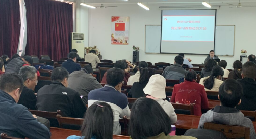 3月25日下午,数计学院在7310会议室召开党史学习教育动员大会,深入学习贯彻落实习近平总书记在党史学习教育动员大会上的重要讲话精神、学校党史学习教育动员大会精神,学院全体教职工参会,会议由曾山副院长主持。
