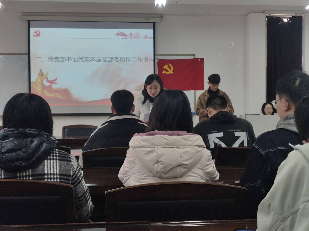 党支部书记吴春娥代表上届支委作了工作报告,她从理论学习、党员发展、积极分子培育、支部主题党日活动等方面回顾了支部在过去三年取得的成绩。她围绕加强思想理论教育、增强支部凝聚力、提高支部建设科学化水平、提升育人实效等四个方面,明确提出了支部今后三年的奋斗目标。她号召全体学生党员要不断增强“四个意识”,坚定“四个自信”,努力做到“两个维护”,用实际行动为支部建设贡献力量。