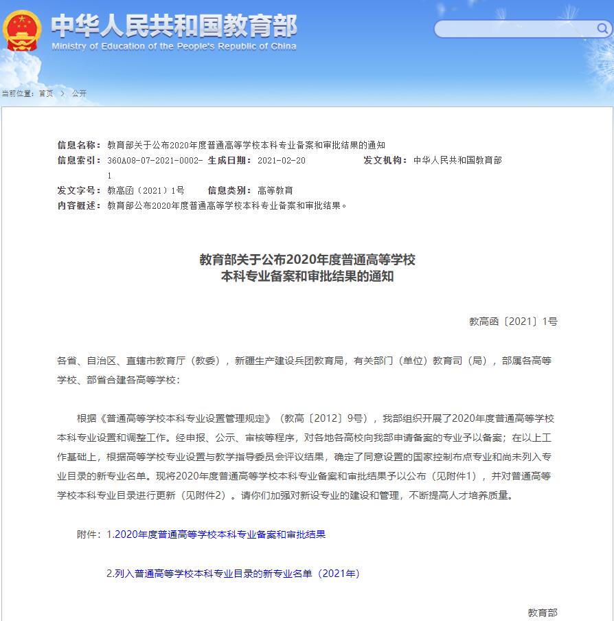 近日,教育部下发《教育部关于公布2020年度普通高等学校本科专业备案和审批结果的通知》(教高函〔2021〕1号),澳门网投唯一官网新增人工智能本科专业,该专业今年将列入招生计划。