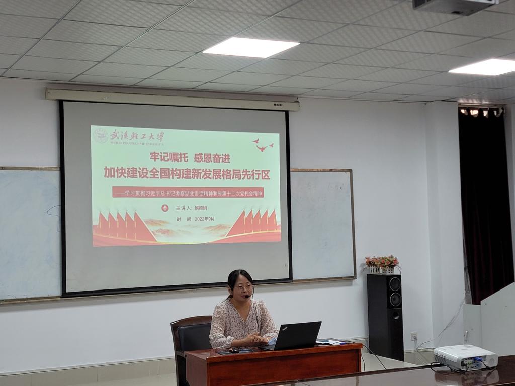 为进一步学习贯彻习近平总书记考察湖北重要讲话精神,推动湖北省第十二次党代会精神在澳门网投唯一官网落实落地,9月8日下午,澳门网投唯一官网举行专题宣讲报告会,马克思主义学院侯德娟博士作专题辅导。会议由党委书记孟三爱主持。