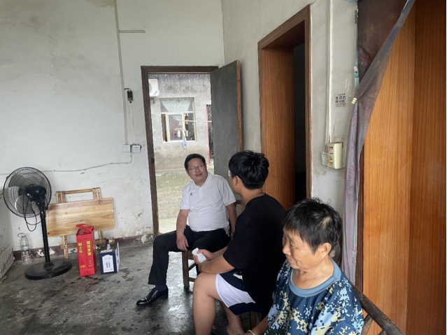 7月26日中午,冒着瓢泼大雨,穿过乡村小路,历经3小时车程,来到了家访第二站当阳市张同学家中。张同学父亲在外地务工,75岁的奶奶见到老师们冒着暴雨来到家里看望张同学,内心十分激动。平时奶奶独自在家,懂事的张同学也利用暑假照看奶奶,并在附近工地干活挣点工钱补贴家用。孟三爱充分肯定张同学的吃苦精神,鼓励他正确看待眼前的家庭困难,勇于承担,敢于克服,同时要做好职业发展规划,努力学好专业,以优异的成绩回报家人、学校和社会。