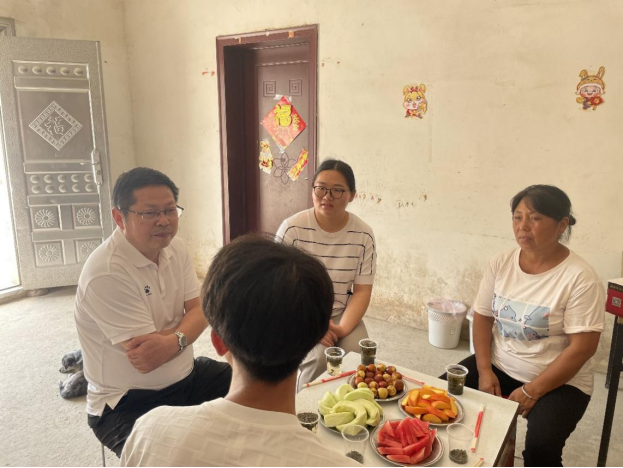 7月26日清早,学院党委书记孟三爱一行驱车数百公里赴襄阳和当阳两地开展家访活动。第一站来到家住襄阳市襄州区刘家沟的刘同学家中,刘同学父亲前些年因病去世,其母亲一人独自务农供养双胞胎兄妹,妹妹也在读大学,家庭经济十分拮据。当得知刘同学利用暑期托管班挣点收入贴补家里开支,孟三爱对刘同学自立自强表示高度赞扬,并勉励他一定要深耕专业,学好专业知识,提升就业竞争力,耐心解答刘同学关于就业、考研、考编的困惑。刘同学妈妈用自己种植的西瓜、甜瓜来招待老师们,以表达对学校真诚的感谢。