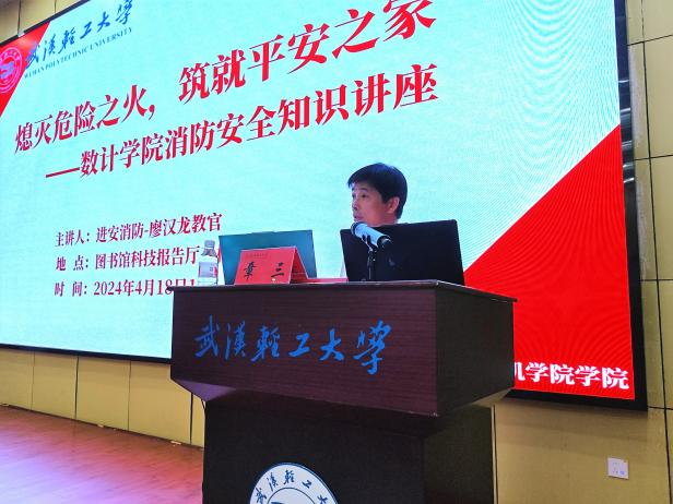 为进一步增强师生消防安全意识,提高火灾防范应急处置能力,营造安全的校园环境,4月18日晚,澳门网投唯一官网在图书馆科技报告厅三楼成功举办消防安全知识讲座。本次讲座邀请武汉市进安消防技术服务中心廖汉龙教官授课。学院党委副书记章三、辅导员李莎及大一、大二、大三学生寝室长等参加此次讲座。活动由章三主持。