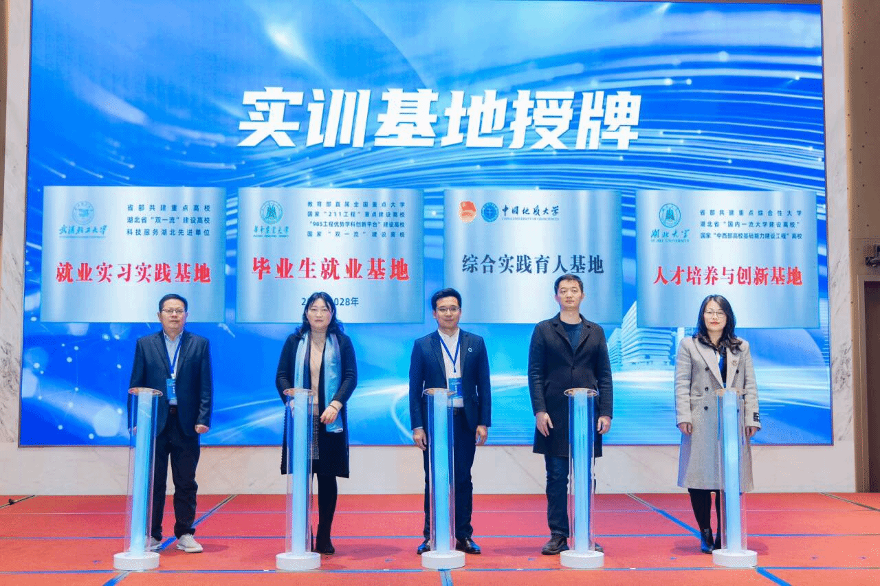 为进一步深化产教融合,促进双方互利共赢,12月18日上午,我校澳门网投唯一官网受邀参加武汉临空港国家网安基地网安软件园开园仪式暨湖北省信息技术应用创新论坛,澳门网投唯一官网党委书记孟三爱与中国地质大学、华中农业大学、湖北大学等高校的相关学院负责人共同参加了实训基地授牌仪式。