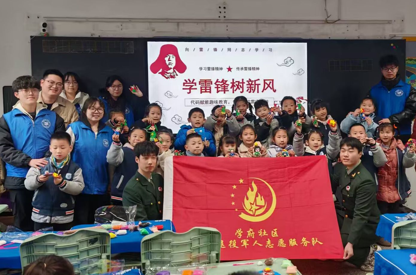 “帮老师倒垃圾”“帮妈妈做家务”“上课不捣蛋”……在“星火”退役军人志愿者服务队队员童永超向小朋友们介绍雷锋并分享部队里的雷锋故事后,小朋友们争先恐后地说出自己可以做的好事。“坚持每天做对的事就是在学习雷锋精神。”童永超的话让小朋友记忆深刻。