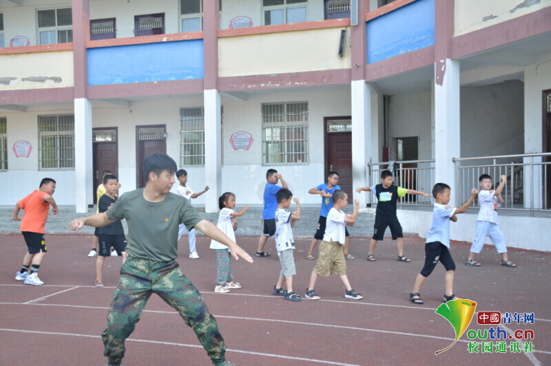 图为志愿者带领小朋友们练习军体拳(来自格林斯学校) 中国青年网通讯员 涂思清 摄