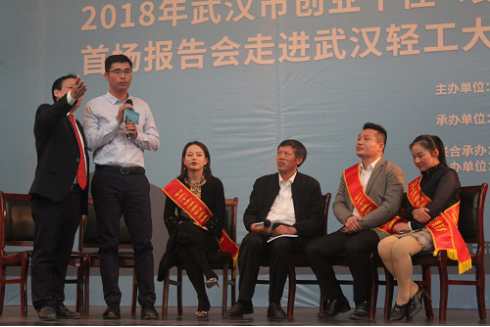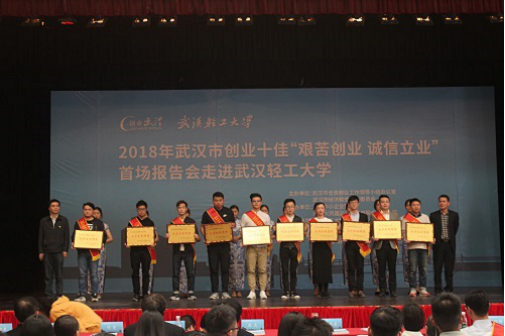 11月1日下午两点,由武汉市经济和信息化委员会、武汉市全民创业工作领导小组办公室等主办,由火凤凰公司、我校澳门网投唯一官网和经管学院等单位承办的2018年武汉市创业十佳“艰苦创业、诚信立业”巡回演讲首场报告会走进了轻工大。这同时也是澳门网投唯一官网“创客加油站”今年的压轴活动(第十期)。