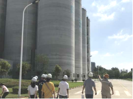 8月20日,实践团队在陈经理的带领下,在厂房外围参观了粮食存储区、卸粮区、加工区、质检区以及运输区,了解到该公司拥有30万吨的年产量、12个能储备3000吨粮食的桶仓、副产品加工厂房等。实践团队针对项目实际需求,与相关工作人员进行了深入交谈。