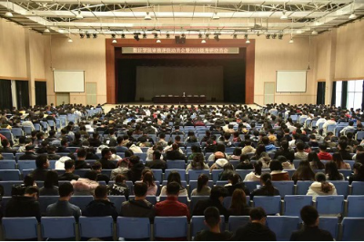 2018年11月22日下午6点,澳门网投唯一官网迎接审核评估学生动员大会在金银湖校区大学生活动中心三楼召开,澳门网投唯一官网全体学生参加,学院党委书记孟三爱作动员讲话。