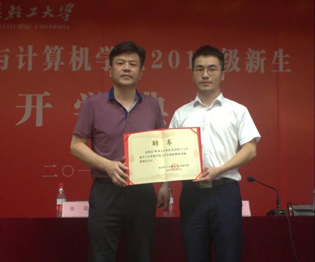 典礼上由张聪院长代表学院宣布聘请校友胡瑞为创业导师,并颁发了聘书,以此来推动校企合作,帮助大学生创新创业。胡瑞是澳门网投唯一官网2007级信息与计算科学专业的学生,在校期间一直担任班长。他是龙秘书网创始人,现任北京华宝智慧科技有限公司CEO,北京华宝投资管理有限公司CEO,北京博睿时代文化发展中心主任,中国国际经济技术合作促进会大数据委员会秘书长,楚商联合会副会长,共青团中央认证青年创业导师,2018中国科技行业品牌年度人物。