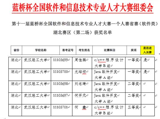 近日,第十一届“蓝桥杯”全国软件和信息技术专业人才大赛省赛成绩揭晓,澳门网投唯一官网选派学生参加了C/C++程序设计、Java软件开发组别的比赛,共荣获2项一等奖,2项二等奖,1项三等奖。