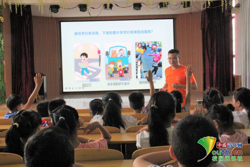 图为格林斯学校学生积极地回答交通安全有关的问题。中国青年网通讯员 胡雨婷 摄
