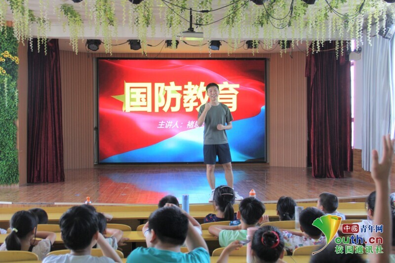 图为褚思维给格林斯学校学生们上国防教育课。中国青年网通讯员 胡雨婷 摄