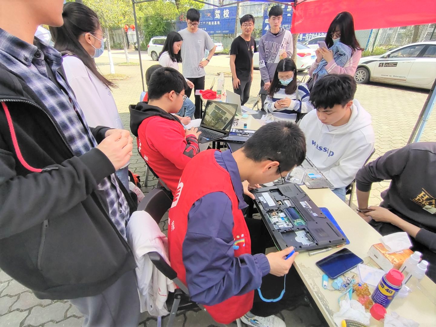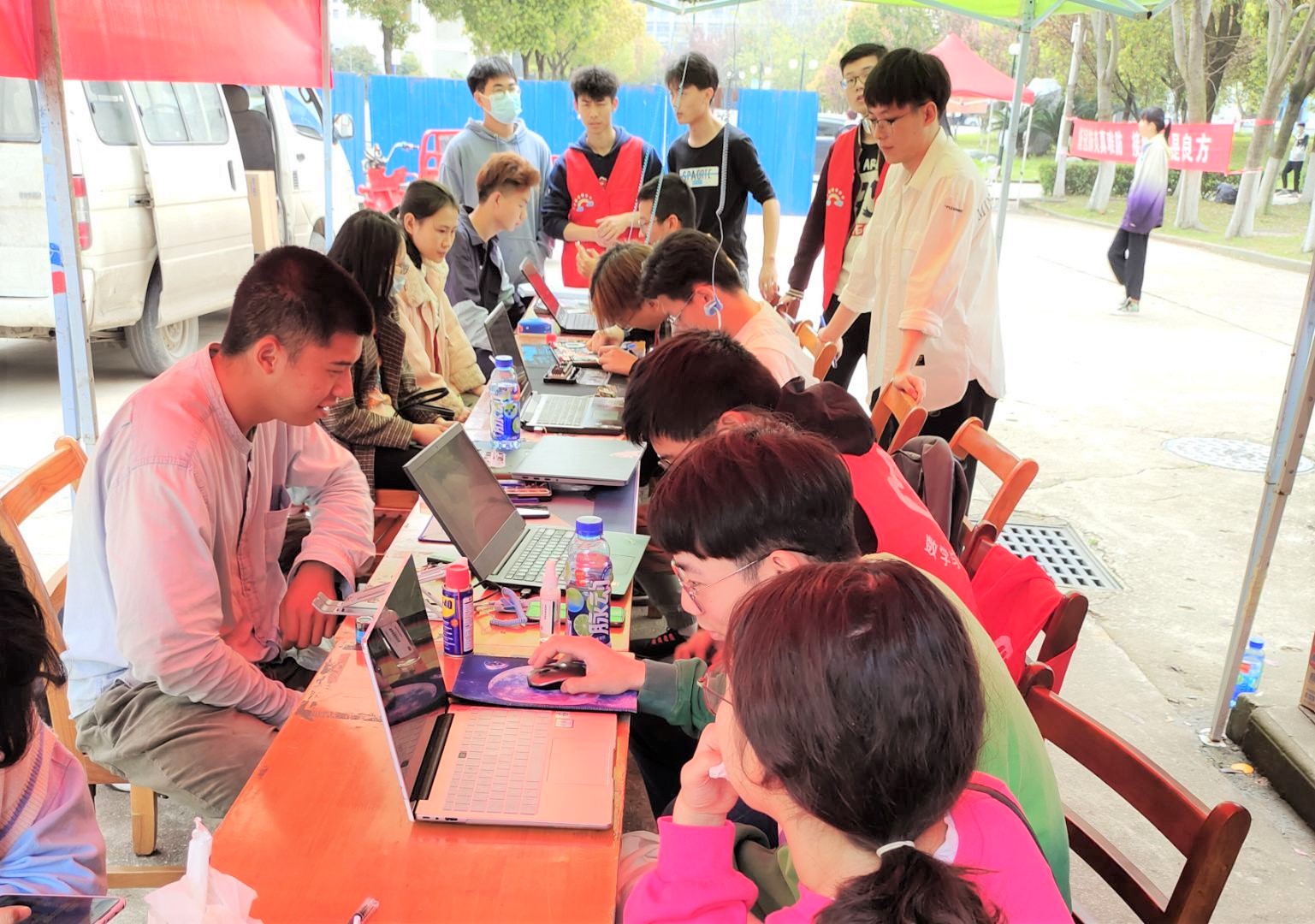 “知道你们要来,我早就在这等着了。”来自食品学院的一名女生,一大早就在梅花餐厅等候志愿者的到来。志愿者们迅速拿出工具,帮助这名同学重装了系统。本次活动不仅帮助师生解决实际问题,还会教服务对象一些实用的小技巧。一名来自动科学院的男生高兴地说:“我的电脑充斥着各类软件和广告。有时候,我都不愿意打开它。经过志愿者的清理,电脑‘轻’了不少。他们还教会了我清理C盘,关闭自启动项的方法。”另一名来自机械学院的同学迟迟不愿离开活动现场,“我本身对电脑就很感兴趣,但是很少有机会可以接触到这么多的电脑高手。跟着他们,我已经学会了如何安装电脑驱动,维护操作系统。”两天的时间里,15名志愿者帮助来自12个学院的90余名同学解决了风扇积灰、电脑蓝屏、软件安装等问题。据统计,本次活动维修、保养了90台电脑,拆机率达到了78%,故障清除率高达100%,做到了零差错、零失误。