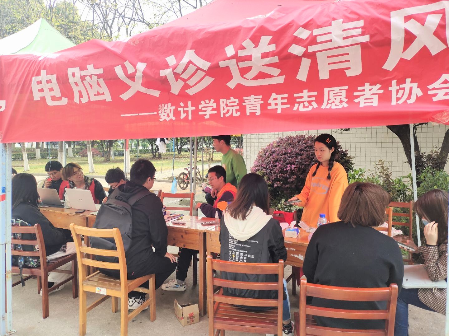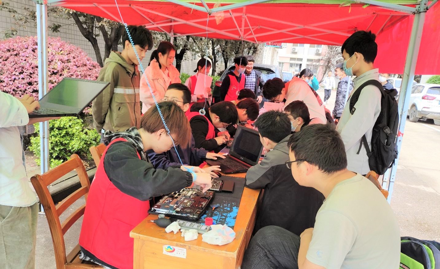 3月27日至28日,在梅花餐厅、金湖餐厅门口,澳门网投唯一官网青年志愿者协会以“电脑义诊送清风”为主题,开展了义务维修电脑的劳动教育主题实践活动。