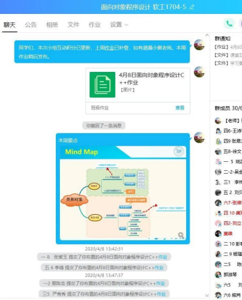 疫情期间,网络课程的教学方式在不断完善,为了找到网络教学的“最优解”,张老师开始了她细致的“解题过程”。为了找到合适的网络教学平台,她根据本学期承担的《面向对象程序设计》课程,安装测试了多种主流网络教学平台,如中国大学慕课、学堂在线、智慧树网,腾讯课堂、对分易、QQ屏幕分享、钉钉等,结合课程特点,经过多轮尝试,最后选定以QQ群课堂直播为主,辅以中国大学慕课视频资源,结合QQ课程群上传学习资料的方式开展线上教学。