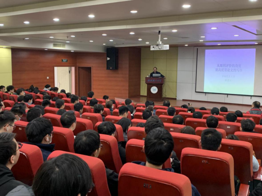 雷教授首先从写论文常见现象开始,提出要培养写读书笔记的习惯,在阅读文献的过程中,要学会解读文献的核心内容,在质疑中补充,在反思中超越,再提出新的方法和方向。随后,雷教授提出在写论文时,心态要尊重客观,认真与严谨,珍惜自己的声誉与价值。雷教授指出,论文的关键是创新点,一篇论文从选题开始就不能掉以轻心,在撰写论文的过程中,要注重细节,注重学术交流,始终抱有一颗好奇心。最后,雷教授讲述了一篇论文的编撰过程,从题目到中英文摘要,论文背景和参考文献等方面,给同学们进行了详细指导。