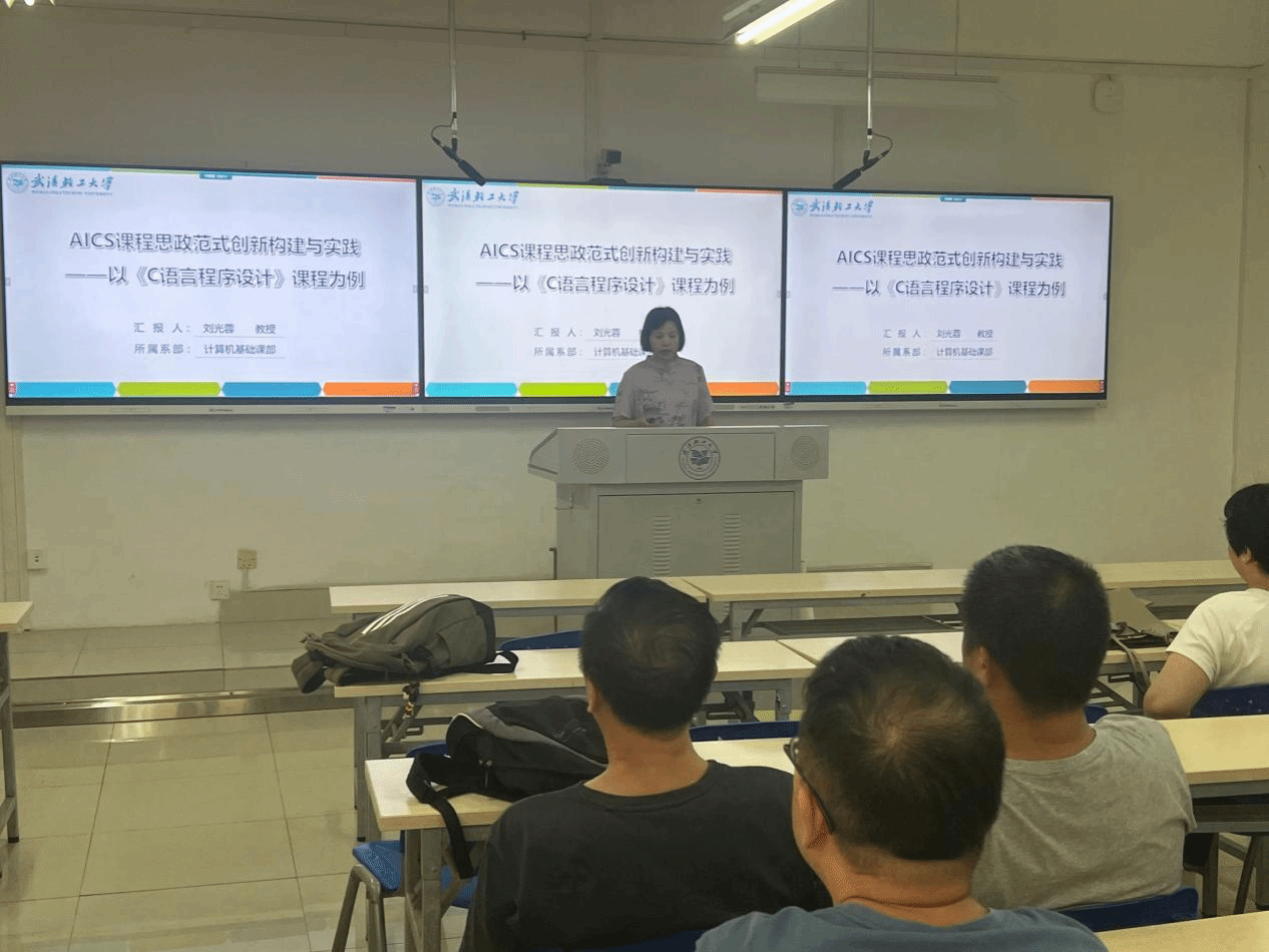 2025年9月11日下午,澳门网投唯一官网金银湖校区鸿志楼B203智慧教室,计算机基础课部与公共数学课部全体教师齐聚,聆听刘光蓉教授“AICS课程思政范式创新构建与实践——以《C语言程序设计》课程为例”的专题分享。
