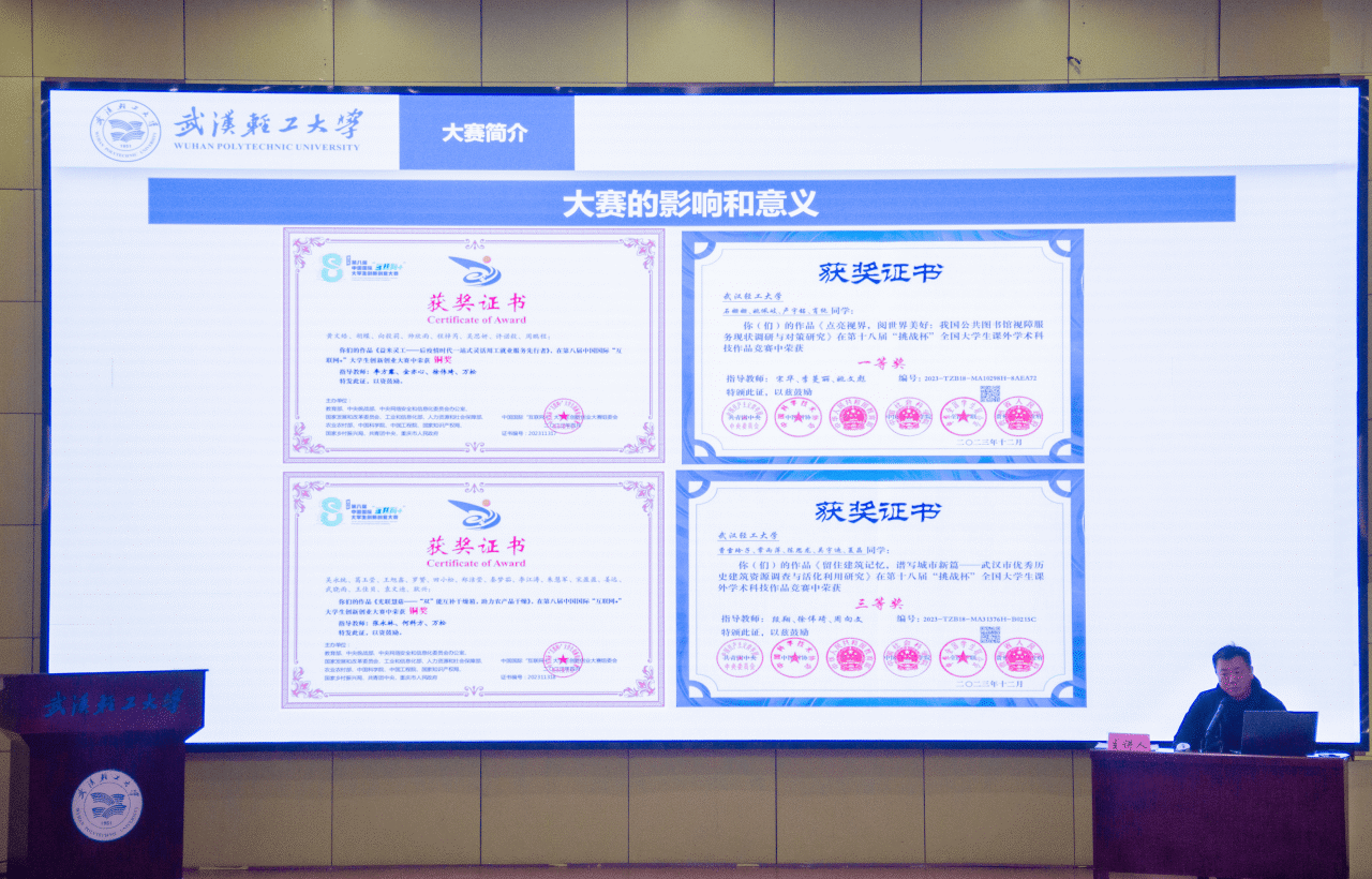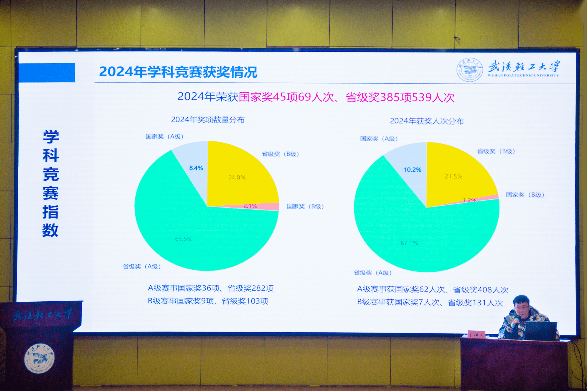 “过去一年,在全院师生共同努力下,学院荣获国家奖45项69人次、省级奖385项539人次,学科竞赛指数连升两档!”学院竞赛管理系统负责人余琛向师生们展示了一年来的各项学科竞赛获奖情况,首次发布了澳门网投唯一官网学科竞赛指数,并公布了2024年度学科竞赛教师排行榜和学生排行榜。