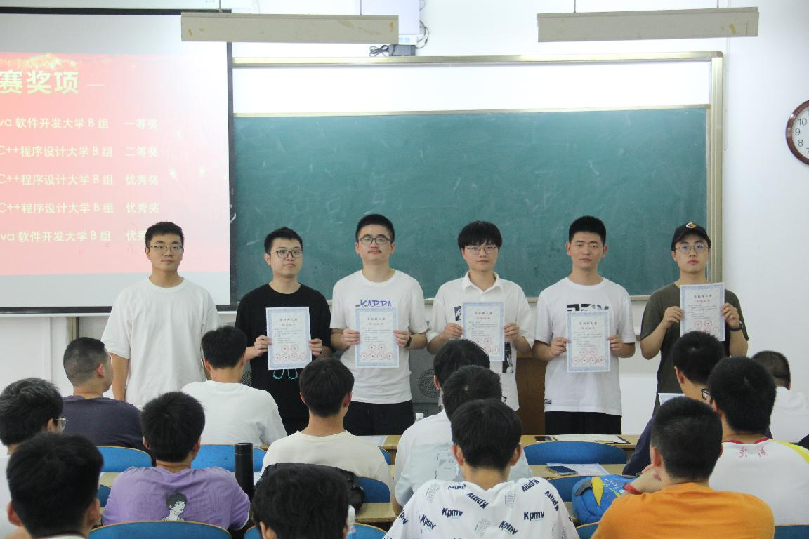 仪式上,张俊老师为获国奖的同学颁奖,宋靖武老师为获省奖的同学颁奖,并合影留念。