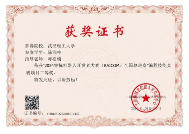 在编程技能竞赛项目中,陈润梓、宗林、余中润三位同学均获全国二等奖,邱庆臆、金吉阳、何柏朗三位同学均获全国三等奖。在夺宝联盟竞赛项目中,刘策、刘俊骅、李金龙三位同学组成的参赛团队(指导老师:陈松楠、李皞)获全国三等奖。据悉,睿抗机器人开发者大赛(RAICOM)由工业和信息化部人才交流中心主办,是教育部高校学科竞赛排行榜中的国家级赛事,旨在促进数字技术、人工智能及机器人技术的创新应用,为推进高等教育知识与实践的结合搭建了良好的交流平台。